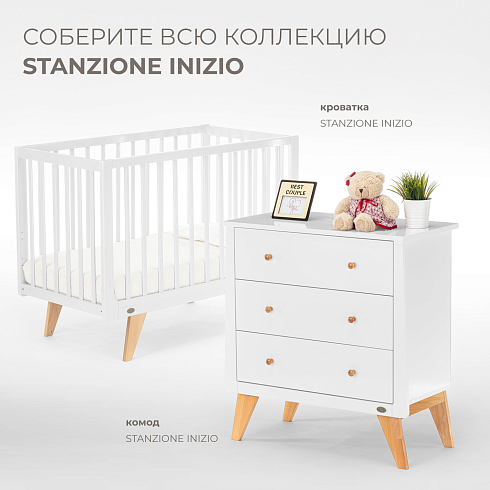 Nuovita Stanzione Inizio — безопасная и стильная детская кроватка-трансформер для детей с рождения до 3 лет (до 25 кг), выполненная в скандинавском стиле с натуральным буком и глянцевой эмалью. Реечные бортики, слегка скругленные углы и регулируемое ортопедическое ложе обеспечивают безопасность и комфорт малыша. Съёмная передняя стенка позволяет превратить кроватку в диванчик, а регулируемая высота ложа и возможность трансформации в манеж делают её практичной на протяжении нескольких лет.