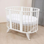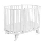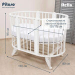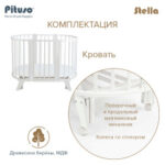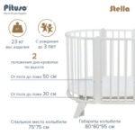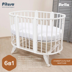 Детская кроватка‑трансформер PITUSO Stella 6/1 с универсальным маятником — рассчитана на детей от рождения до 3 лет и предлагает множество вариантов сборки: от круглой колыбели до овальной кровати с маятником или стационарной.