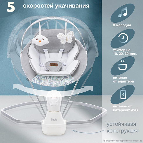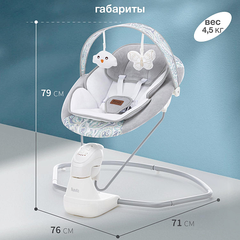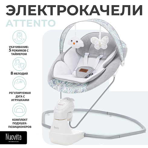 Электрокачели Nuovita Attento A1 создают уютное и безопасное пространство для малыша, учитывая анатомические особенности новорожденного и обеспечивая комфорт, словно в маминых объятиях.
