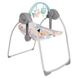 Модель оснащена микрокомпьютерным управлением, 8 режимами качания, таймером на 8, 15 и 30 минут, а также удобным дистанционным и голосовым управлением. Музыкальный мобиль с 12 мелодиями, 2 звуками природы, вращающимися игрушками и 7-цветной подсветкой развлекает малыша и стимулирует развитие зрительного восприятия. Конструкция легко складывается, имеет удобные ручки для переноски и полностью соответствует европейскому стандарту EN16232.