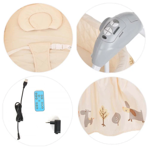 Главная - Каталог товаров - Детские качели и шезлонги - PITUSO электрокачели-колыбель Camellia Beige Zoo/ Зоопарк бежевый