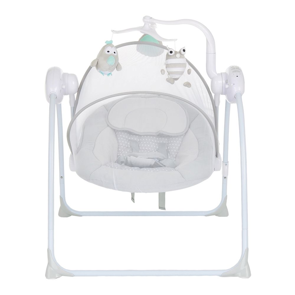 Качели подходят как для дома, так и для использования на свежем воздухе — в комплект входит антимоскитная сетка. Конструкция легко и компактно складывается, удобна в переноске и хранении. Электронная система автоматически подстраивает скорость под вес и положение малыша, обеспечивая максимально плавное и безопасное укачивание.