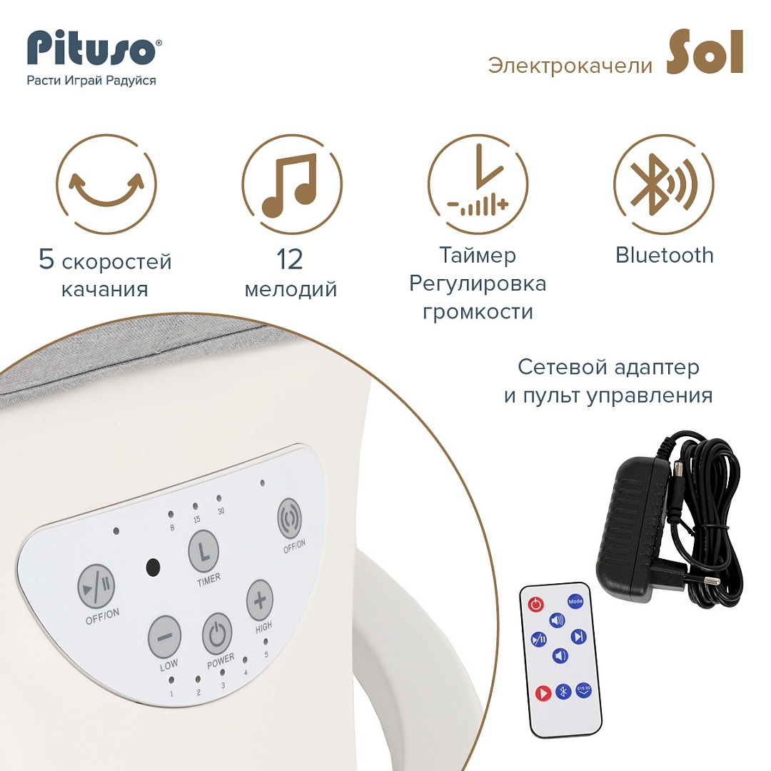 Главная - Каталог товаров - Детские качели и шезлонги - PITUSO электрокачели Sol Grey/Серый