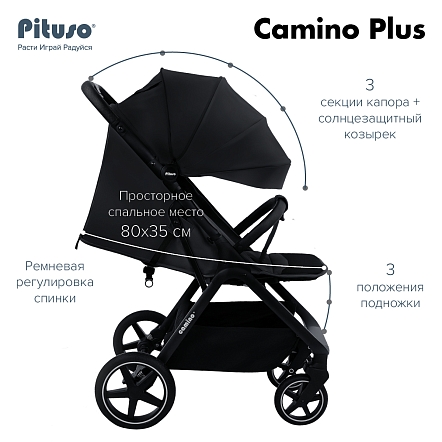 PITUSO Коляска детская CAMINO+(прогулочная),Black/чехол на ножки