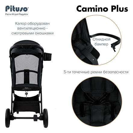 Прогулочная коляска PITUSO CAMINO Plus сочетает стиль, комфорт и безопасность, оснащена увеличенными амортизированными колёсами и просторным спальным местом 80×35 см для малыша до 22 кг. Глубокий капюшон с защитой UV50+, пятиточечные ремни безопасности и регулируемая подножка обеспечивают надежность и удобство на каждой прогулке. В комплект входят бампер, накидка на ножки, дождевик, москитная сетка и подстаканник, а удобное складывание одной рукой облегчает транспортировку и хранение.
