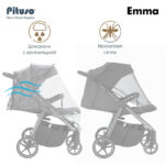 Прогулочная коляска Pituso Emma сочетает стиль, комфорт и безопасность, с просторным спальным местом 90×36,5 см, твёрдой спинкой и регулируемой подножкой. Глубокий капюшон с вентиляцией и тёплый футкавер защищают малыша от непогоды и ветра, а пятиточечные ремни и съёмный бампер обеспечивают надежную фиксацию. В комплект входят накидка на ножки, дождевик, москитная сетка и подстаканник, а компактное складывание облегчает хранение и транспортировку.
