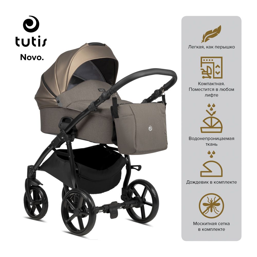 Торговая марка Tutis представляет модель Novo, которая сочетает стильный дизайн, комфорт и удобство для родителей и малыша. Глянцевые кожаные материалы, плавные линии корпуса и продуманные детали привлекают внимание и создают современный облик коляски. Модель прекрасно подходит как для прогулок по городу, так и для путешествий за пределами города, обеспечивая лёгкость управления и мягкость хода на любых поверхностях.