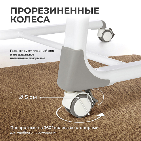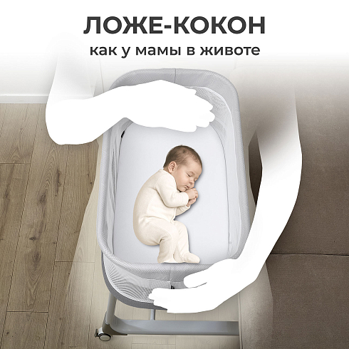 Мягкий тканевый корпус и компактное спальное место создают ощущение уюта и защищённости, необходимое в первые месяцы жизни. Прочная конструкция с прорезинёнными Г-образными ножками обеспечивает устойчивость и позволяет использовать колыбель как приставную кроватку.