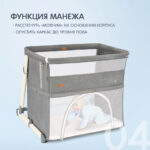 Для удобства родителей предусмотрены колёсики для перемещения и противоскользящие накладки на ножках. При необходимости кроватка легко превращается в манеж — достаточно расстегнуть молнии на основании и опустить каркас до пола.