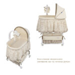 • 3 режима использования: приставная кроватка, колыбель на колёсах, колыбель-качалка