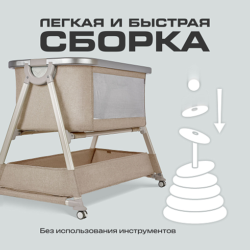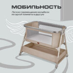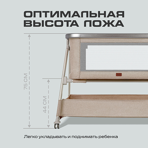 Просторное спальное место 83×50×33 см обеспечивает уют и безопасность. Высота ложа 44 см позволяет легко укладывать и поднимать малыша, не напрягая спину.
