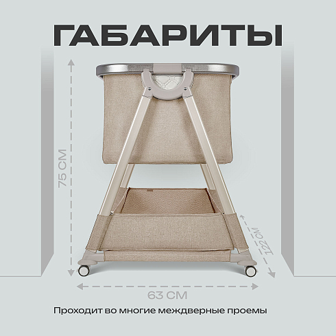 Благодаря ширине 63 см, колыбель легко проходит в дверные проёмы. Две эргономичные ручки делают переноску безопасной и удобной.