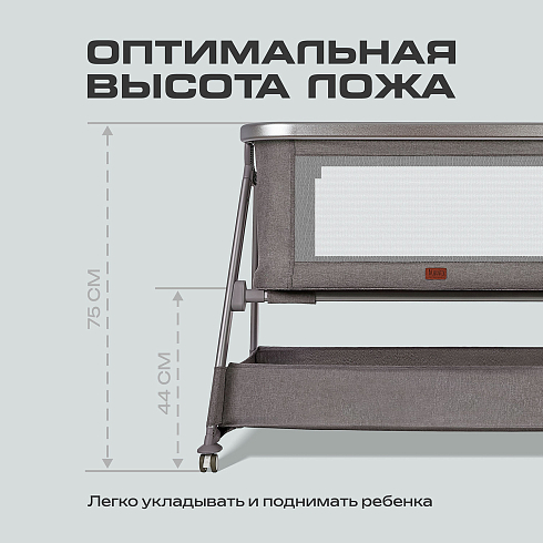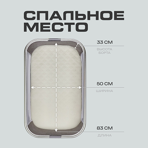 Просторное спальное место 83×50×33 см обеспечивает уют и безопасность. Высота ложа 44 см позволяет легко укладывать и поднимать малыша, не напрягая спину.