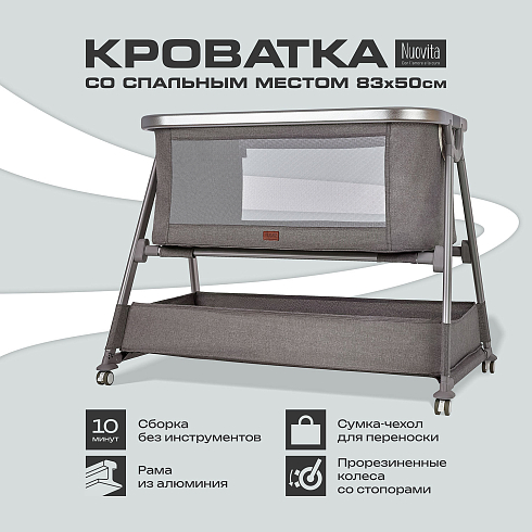 Детская приставная кроватка NUOVITA ACCANTO VANNI — универсальная, лёгкая и мобильная колыбель, созданная для комфортного сна вашего малыша с первых дней жизни.