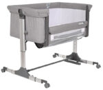 Питание безопасности обеспечивают прочная алюминиевая рама с 4 уровнями регулировки высоты, кнопки с обеих сторон предотвращают случайное изменение положения, а сетчатая передняя стенка позволяет родителям наблюдать за малышом. Колыбель легко складывается и занимает минимум места, что удобно для хранения и транспортировки.