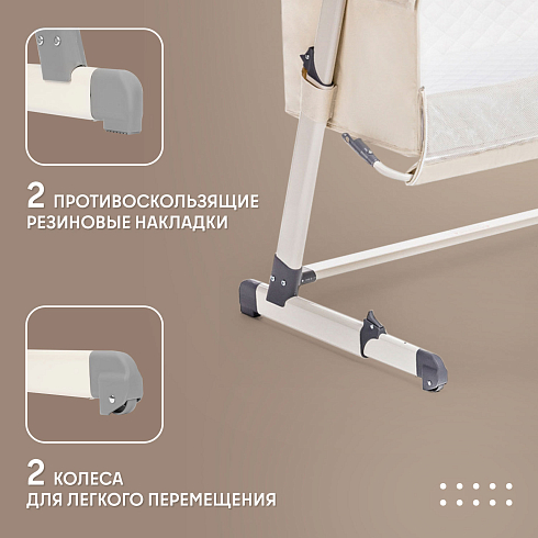 • колесики, позволяющие легко передвигать приставную кроватку