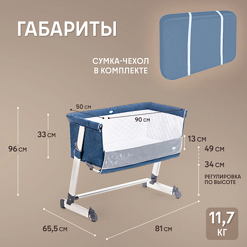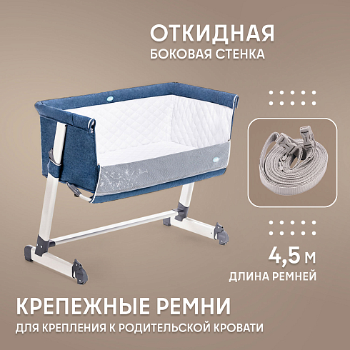 Приставная кроватка Nuovita Accanto Blu scuro lino/Темно-синий лён