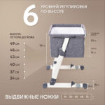 • специальные регулирующиеся в 2-х положениях противоскользящие ножки для установки у кровати с выдвижным ящиком