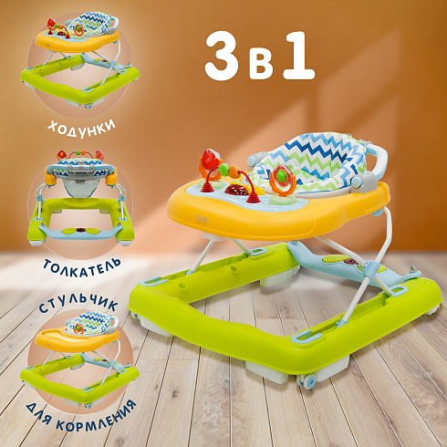 • 3 в 1 — ходунки, толкатель и стульчик для кормления.