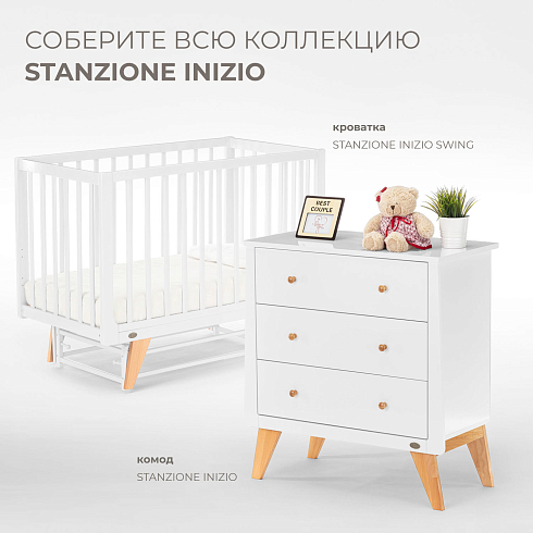 - В дополнение к комоду можно приобрести кроватку Nuovita Stanzione Inizio из той же коллекции, создавая единый и функциональный интерьер детской комнаты.
