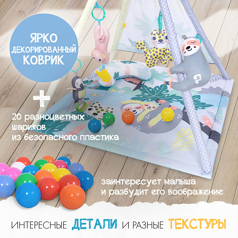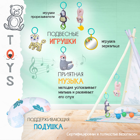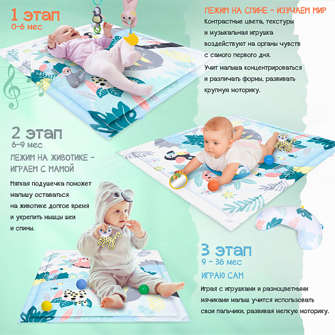 Развивающий коврик Nuovita Piccobine Campo С1 помогает малышу безопасно и интересно изучать окружающий мир: рассматривать игрушки, прислушиваться к звукам, тянуться к предметам и учиться переворачиваться. Мягкое основание обеспечивает комфорт и новые тактильные ощущения, а яркий дизайн стимулирует развитие зрения и воображения. Схватил игрушку — пощупай! Лёгкий вес коврика позволяет устраивать мини‑игровую в любом месте.