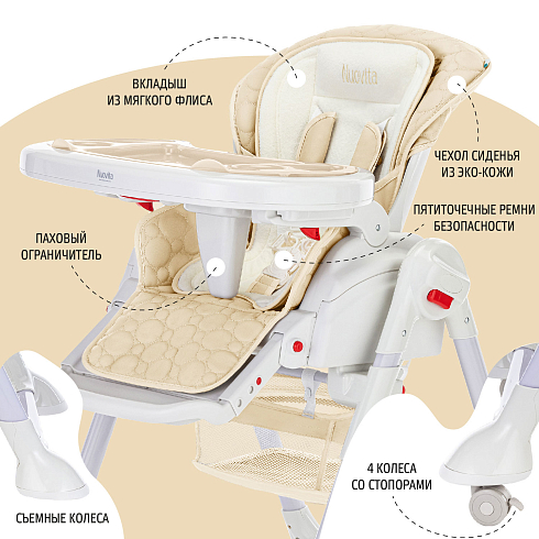 Стул-шезлонг для кормления Nuovita Tutela Beige goffratura/Бежевый с тиснением