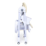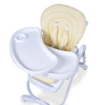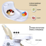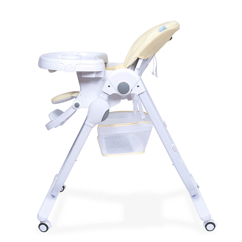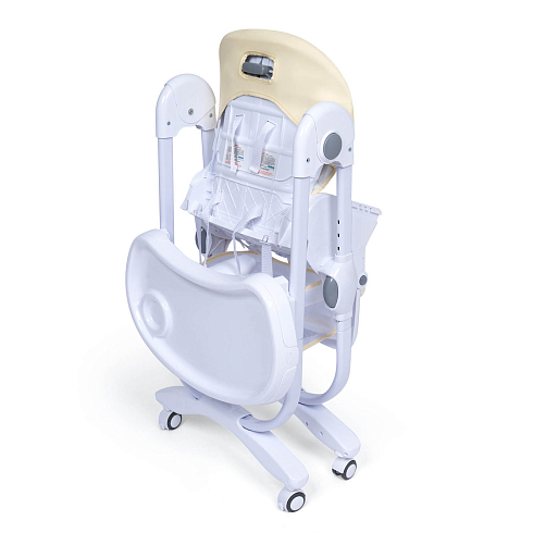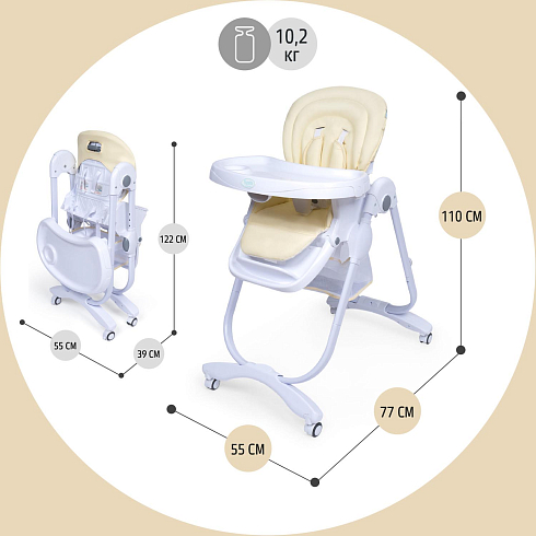 Родители оценят продуманность конструкции: съёмная столешница с дополнительным вкладышем и моющаяся обивка облегчают уход за стульчиком, колёсики со стопорами позволяют безопасно перемещать стул по квартире, а компактное сложение делает хранение удобным даже в ограниченном пространстве. Подвесная корзина для игрушек и аксессуаров помогает держать всё необходимое под рукой.
